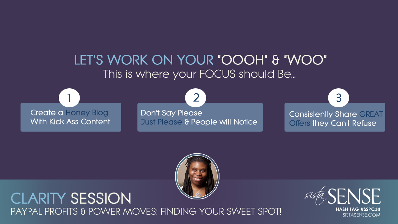 It may seem like this is taking forever, but is it really taking that long? I’ve been online for over 10 years and working at home for the last 6+ years. If you want this you have to stay the course and EVEN when it feels like nobody is watching you have to blog like they are and keep at it. (1) Create a Honey Blog with Kick Ass Content. (2) Don’t Say Please, Just Please People and they will take notice. (3) Consistently share GREAT Offers that people can refuse. You’ve got to boost your “OOOOOOH Factor” and “WOO” your target audience to boost sales and build a solid community around your business.