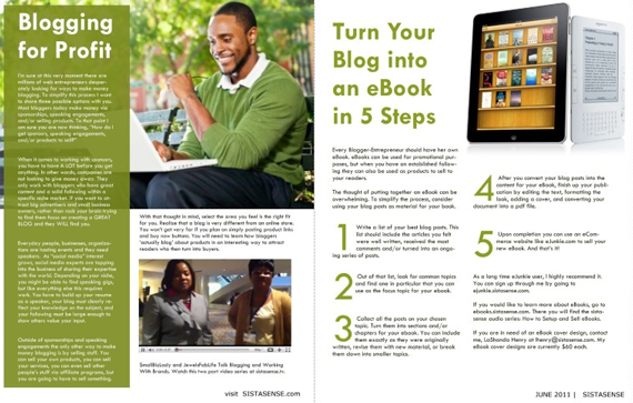 SistaSense In Print June Issue is now available! Took me a little longer than expected to get this one out, but its here! This issue is focused on building your online brand on a budget. In addition to branding, I also share tips on turning your blog into an eBook, Tech Tools and Gadgets for your home office, Creating a Money Making website, my lessons learned from the Black Enterprise Entrepreneur’s Conference and more.