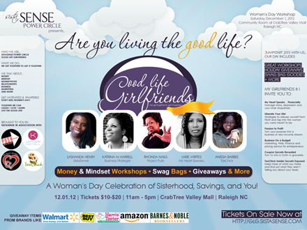If you ask me, all the entrepreneurship buzz in the world boils down to one thing, “People want the freedom to live their best life, a good life.” I hope you got my Facebook invitation for Good Life Girlfriends Women’s Day Event on December 1, 2012 in Raleigh NC.