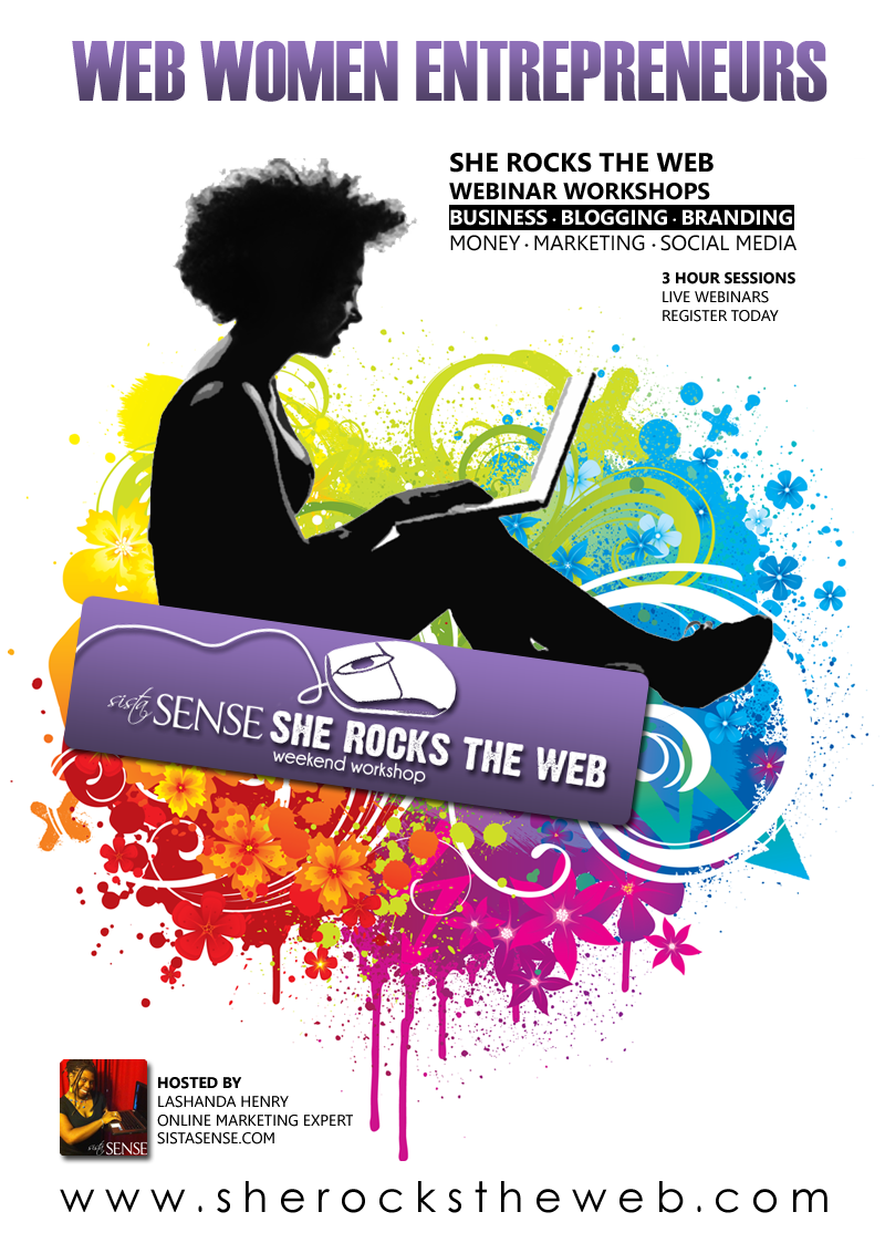 My first fall Rock the Web webinar is officially this Friday and there is still time to join us and get access to my SistaSense secrets to Rocking the Web! Plus registration has reopened for both the “Blogging for Business” and “Email Marketing/Customer Attraction” Workshops. Each webinar workshop is 3 hours, 3 sessions and you get the replays when they are ready. Plus all attendees get the SistaSense Power Circle Bonus Gift (8 mp3 download sessions on building your business, brand, and wealth online).